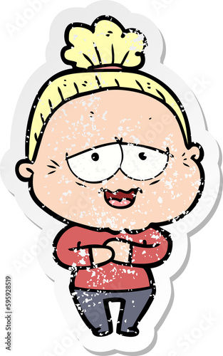 © lineartestpilot, Obraz premium distressed sticker of a cartoon happy old lady