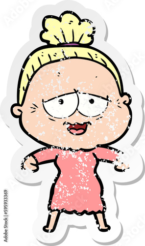 Obraz premium distressed sticker of a cartoon happy old lady