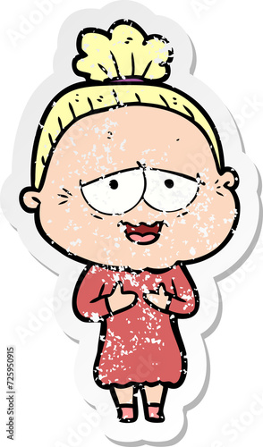 © lineartestpilot, Obraz premium distressed sticker of a cartoon happy old lady