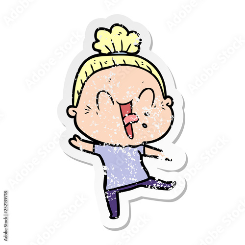 © lineartestpilot, Obraz premium distressed sticker of a cartoon happy old woman