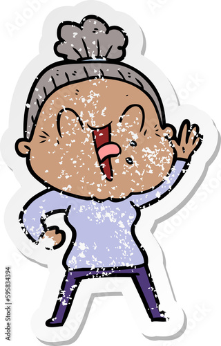 Fototapeta premium distressed sticker of a cartoon happy old woman