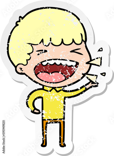 Obraz premium distressed sticker of a cartoon laughing man