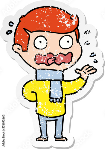 Obraz premium distressed sticker of a cartoon man totally stressed out