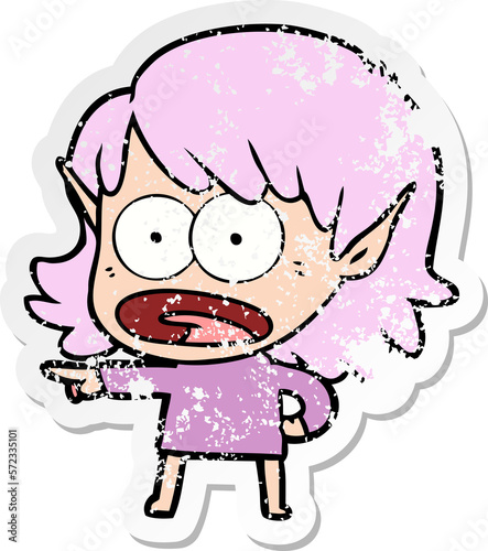 Fototapeta premium distressed sticker of a cartoon shocked elf girl