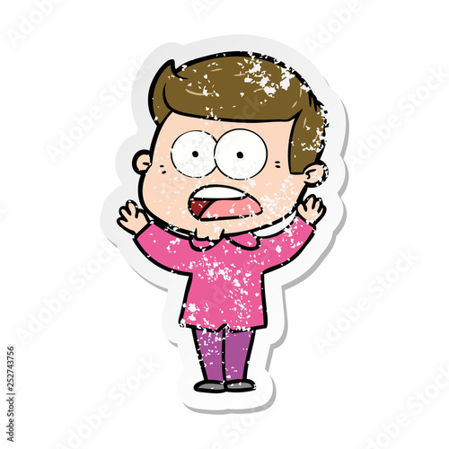 © lineartestpilot, Obraz premium distressed sticker of a cartoon shocked man