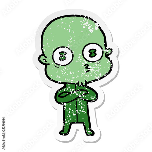 Obraz premium distressed sticker of a cartoon weird bald spaceman