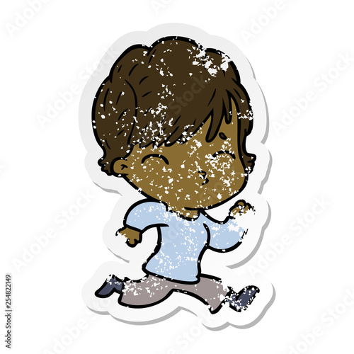 Fototapeta premium distressed sticker of a cartoon woman thinking