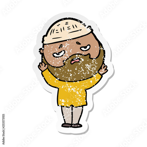 Obraz premium distressed sticker of a cartoon worried man with beard