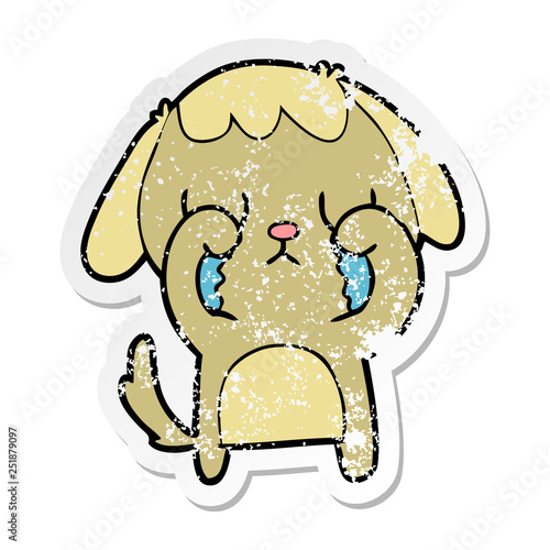 Obraz premium distressed sticker of a cute cartoon dog crying