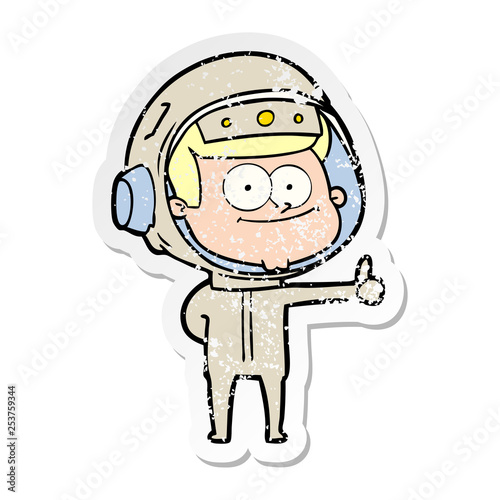 Obraz premium distressed sticker of a happy astronaut cartoon