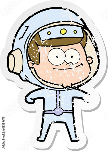Obraz premium distressed sticker of a happy astronaut cartoon