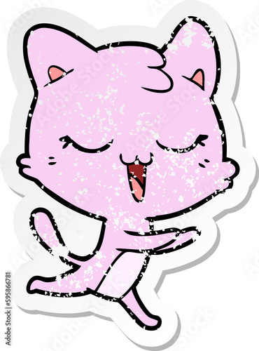 Obraz premium distressed sticker of a happy cartoon cat