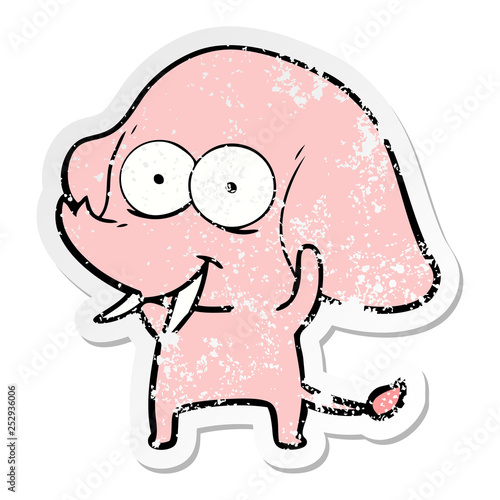 Fototapeta premium distressed sticker of a happy cartoon elephant