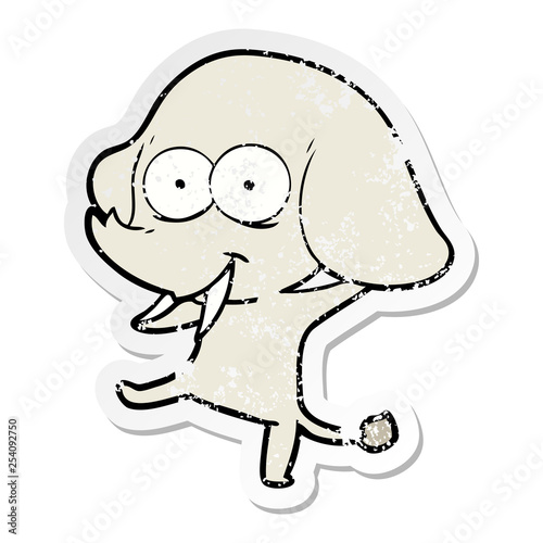 Fototapeta premium distressed sticker of a happy cartoon elephant
