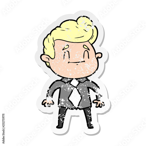 Fototapeta premium distressed sticker of a happy cartoon man in office clothes