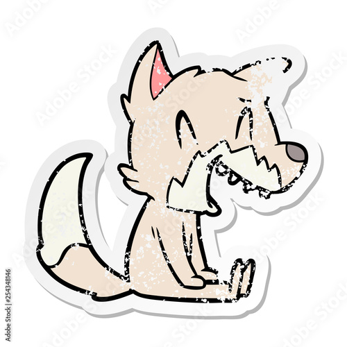 Obraz premium distressed sticker of a laughing fox cartoon