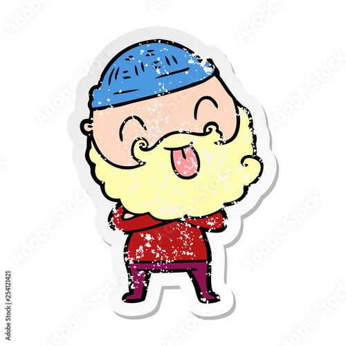 Obraz premium distressed sticker of a man with beard sticking out tongue