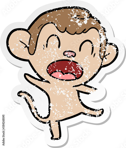 Fototapeta premium distressed sticker of a shouting cartoon monkey dancing