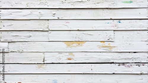 © CreativeBro, Obraz premium Distressed White Wooden Plank Wall Background with Textured Surface for Rustic Interior Design Concepts and Photography Backdrops