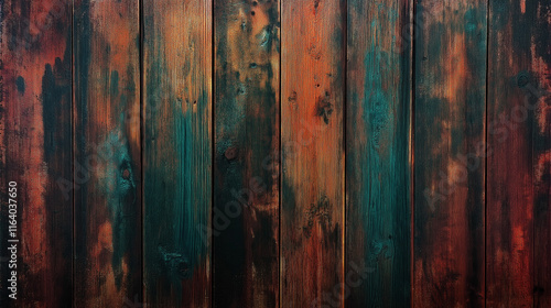 © Ali, Obraz premium Distressed Wood Background with Blue and Orange Tone