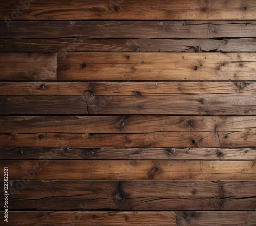 Naklejka premium Distressed wood plank background with visible grain and brown color tone, earthy, natural, brown grunge texture