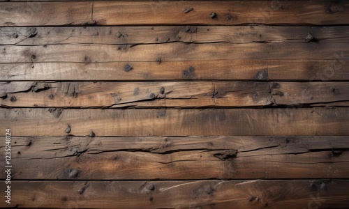 Naklejka premium Distressed wooden texture with horizontal cracks and grime, resembling weathered planks, wood texture, horizontal distress overlay texture