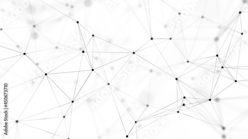 Fototapeta premium Distribution of black lines and dots in white space. Digital background of data network connection. 3D rendering.