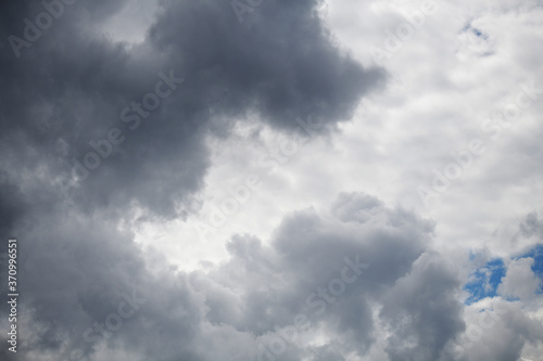 Fototapeta premium Disturbing gray clouds, covering the blue sky