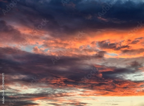 © iuliiawhite, Fototapeta premium Disturbing sunset sky background for text