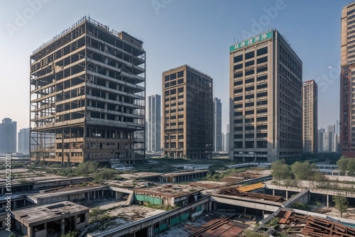 Obraz premium Disused Professional Floors and Towering Structures in Qingdao's Commercial...