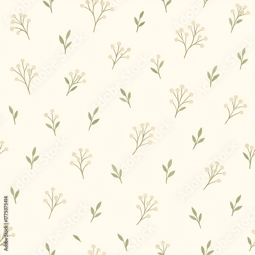 © Littlestar 0816, Fototapeta premium Ditsy floral babys breath seamless pattern background in offwhite nature inspired design