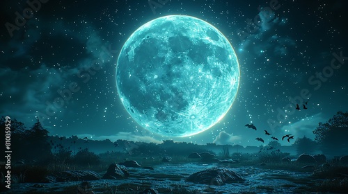 Fototapeta premium Dive into a mystical scene where a radiant full moon hangs in a starry sky,...