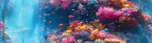© panyawatt, Naklejka premium Dive into a whimsical underwater realm captured with watercolor strokes