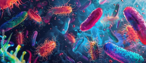 © JK_kyoto, Naklejka premium Dive into the depths of microbiology with a vibrant illustration of probiotics bacteria