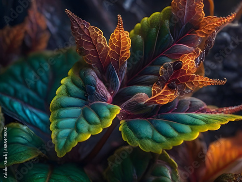 Fototapeta premium Dive into the intricate beauty of nature with mesmerizing macro photography. Explore vibrant foliage and earthy textures in a smoke-kissed avant-garde masterpiece. 🌿📸
