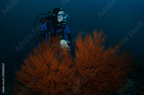 Naklejka premium Diver and coral