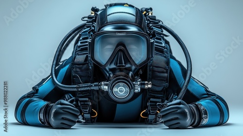 © julio, Fototapeta premium Diver in full gear preparing for underwater exploration.