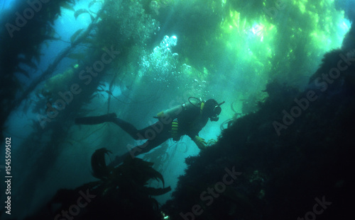 © Jack, Fototapeta premium Diver in kelp forrest