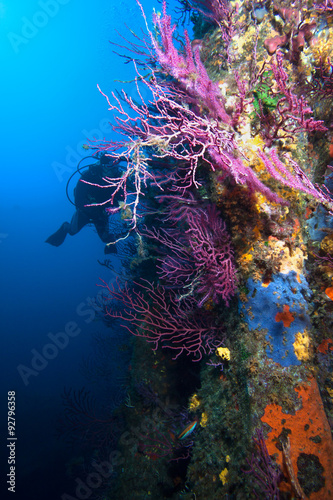 Obraz premium Diver underwater in the mediterranean sea