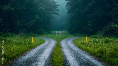 © Ratchadaporn, Fototapeta premium Diverging Path in the Mysterious Forest Symbolizing Choices and Betrayal