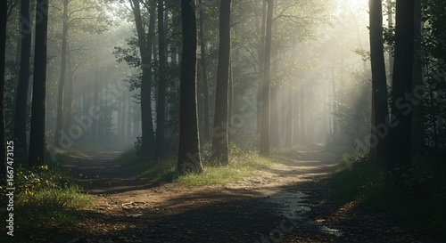 © Marco Mamdouh, Obraz premium Diverging Trails in a Mystical Forest