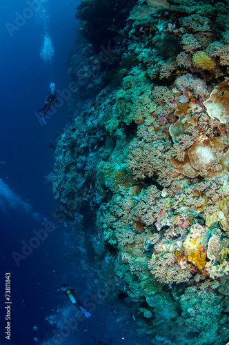 © fenkieandreas, Obraz premium Divers are swimming in Banda, Indonesia underwater