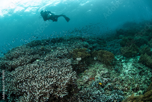 © fenkieandreas, Fototapeta premium Divers, coral reef, anemone in Ambon, Maluku underwater