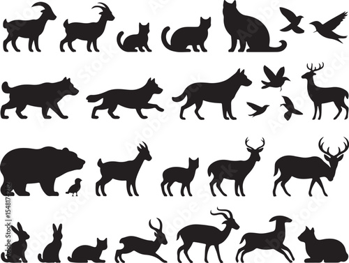 © MdSohel, Fototapeta premium Diverse Animal Silhouettes Vector Collection