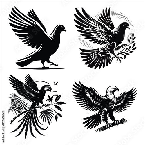 © PijushKumar, Obraz premium Diverse Bird Illustrations Collection