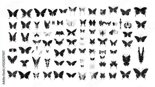 Naklejka premium Diverse black butterflies collection, studio shot, white background, insect...