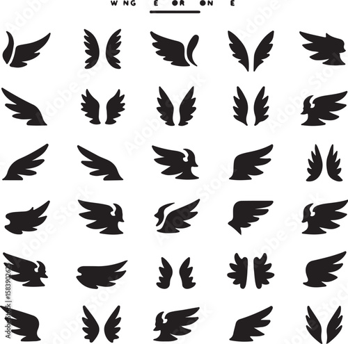 Fototapeta premium Diverse black wing silhouettes wings white background