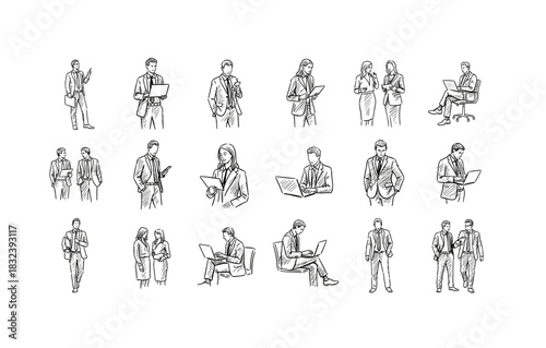 © Evi, Fototapeta premium Diverse business professionals engaging in various corporate activities sketch
