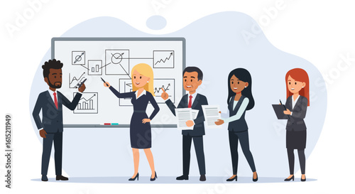 © Creative Pen, Fototapeta premium Diverse business team collaborating on a project, ideal for presentations or marketing materials.