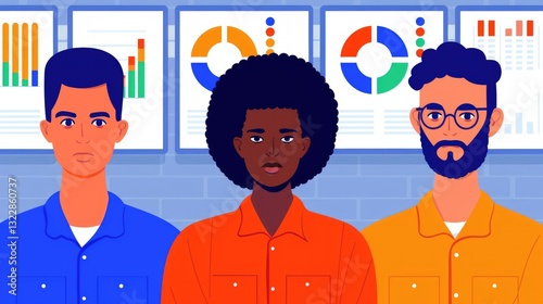 Naklejka premium Diverse Business Team with Charts and Graphs in Modern Office Setting